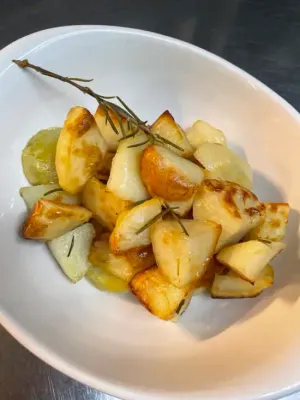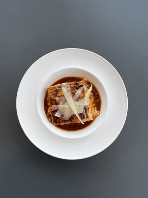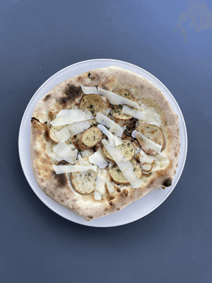 Mozzarella, potato, caramelized onion, parmesan and rosemary.