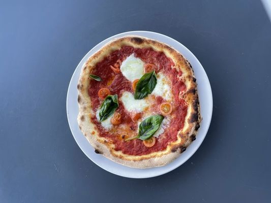 Buffalo mozzarella cheese, cherry tomato, oregano and basil.