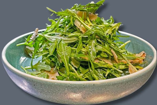 Roquette leaves with shaved parmesan cheese and balsamic.