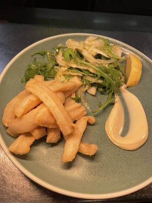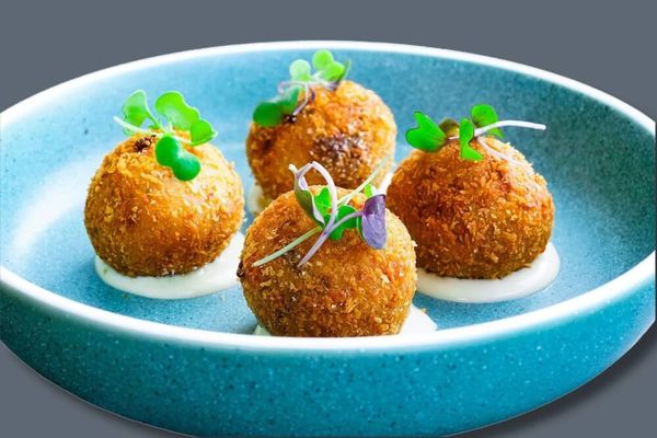 Mushroom, truffle risotto balls and Gorgonzola cream.