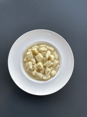 Potato dumplings, Gorgonzola cheese and cream sauce.