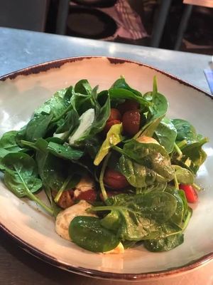 Spinach leaves, sun dried tomatoes and bocconcini cheese.