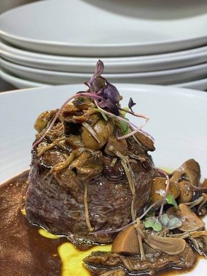 Chargrilled prime cut scotch fillet, red wine jus and mushroom ragu.