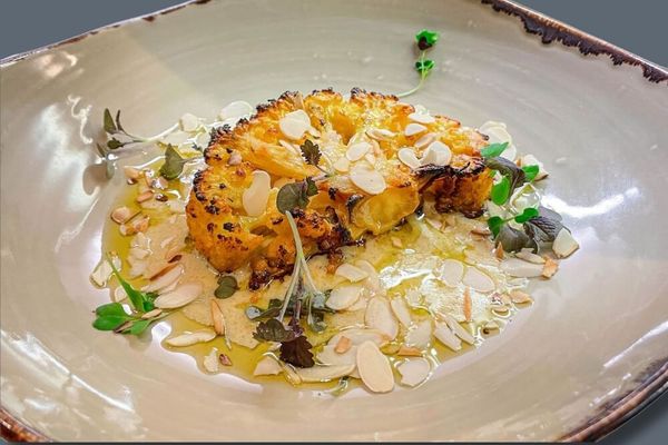 Roasted cauliflower, Gorgonzola cheese sauce and almonds.