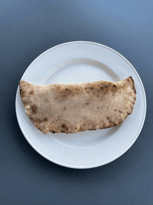 Pizza folded in two with lightly smoked Virginia ham and mozzarella cheese.
